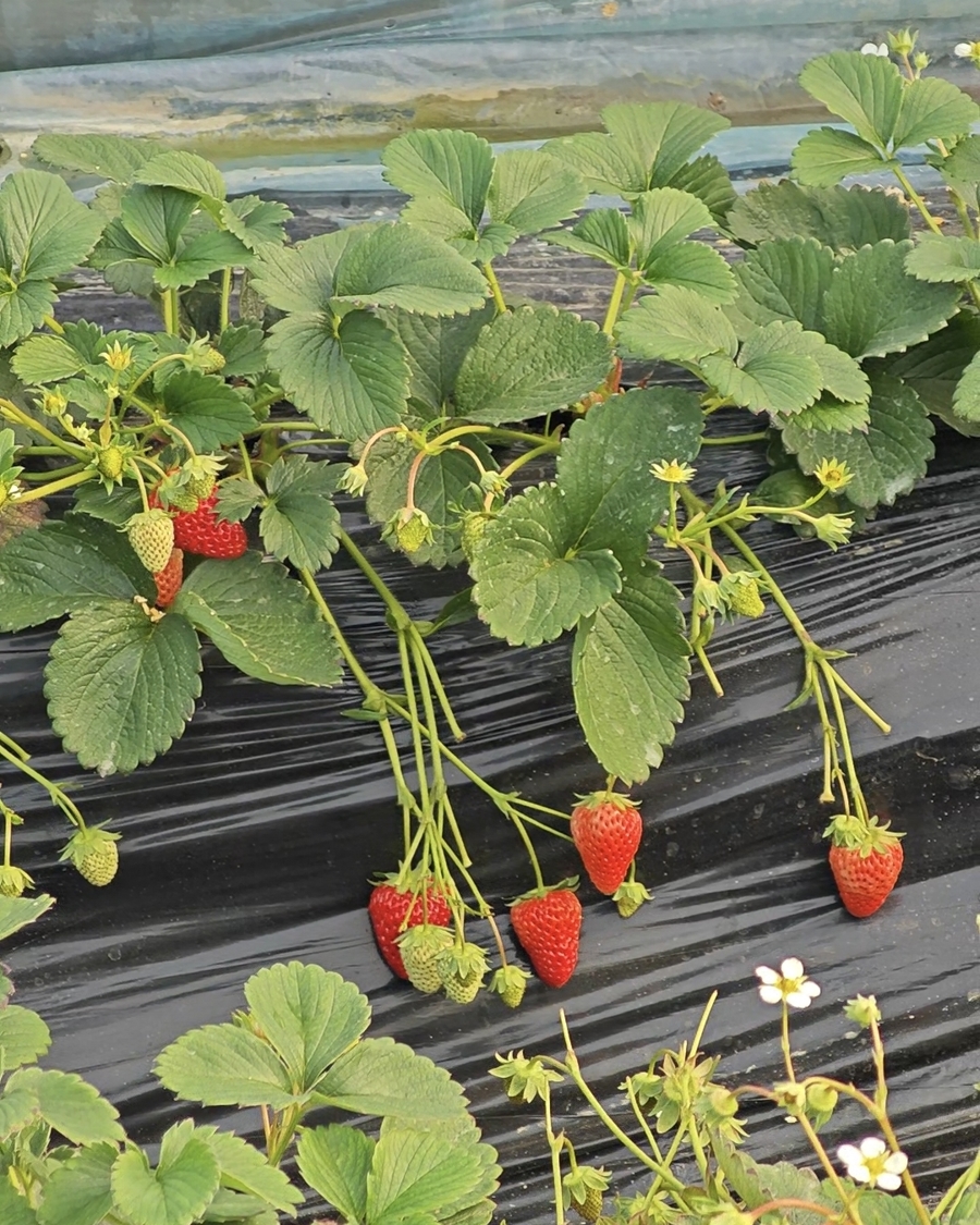 种植户费雪英介绍,紫金香雪是江苏省农科院自主选育的品种,与大部分引种于日本、欧美的白草莓不同,果实白里透粉,集合了成熟早、香味足、甜度高、颜值好、抗病性强等优点。目前,紫金香雪的市场价格在100-120元/斤。