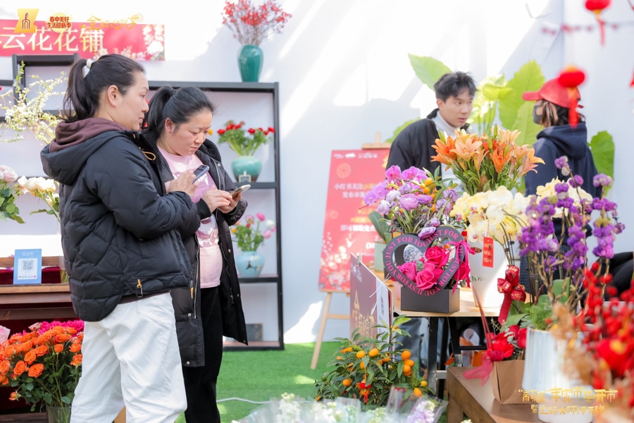 庆典铁心后,“颛属”年宵市场线路开市。即日起,位于颛桥镇限制内的融圃园艺生计+主会场联动龙盛广场、颛桥万达、龙湖天街三大商圈,推出上百个年货展位和风气饰演、夜场促销,同期,写对联、剪纸等年俗行动也将隐敝社区街区,全域激活节日铺张后劲。
