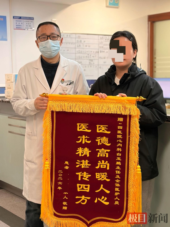2月3日,在武汉市第四医院武胜院区心血管内科病房内,一名93岁的老人感激地握住查房医生的手,家属将一面锦旗送到医生手中。难以想象,此前她曾因头晕黑蒙,全身乏力入院,当时心跳只有每分钟27次。所幸,该院专家为其植入双腔起搏器,帮助老人心脏“满血复活”。