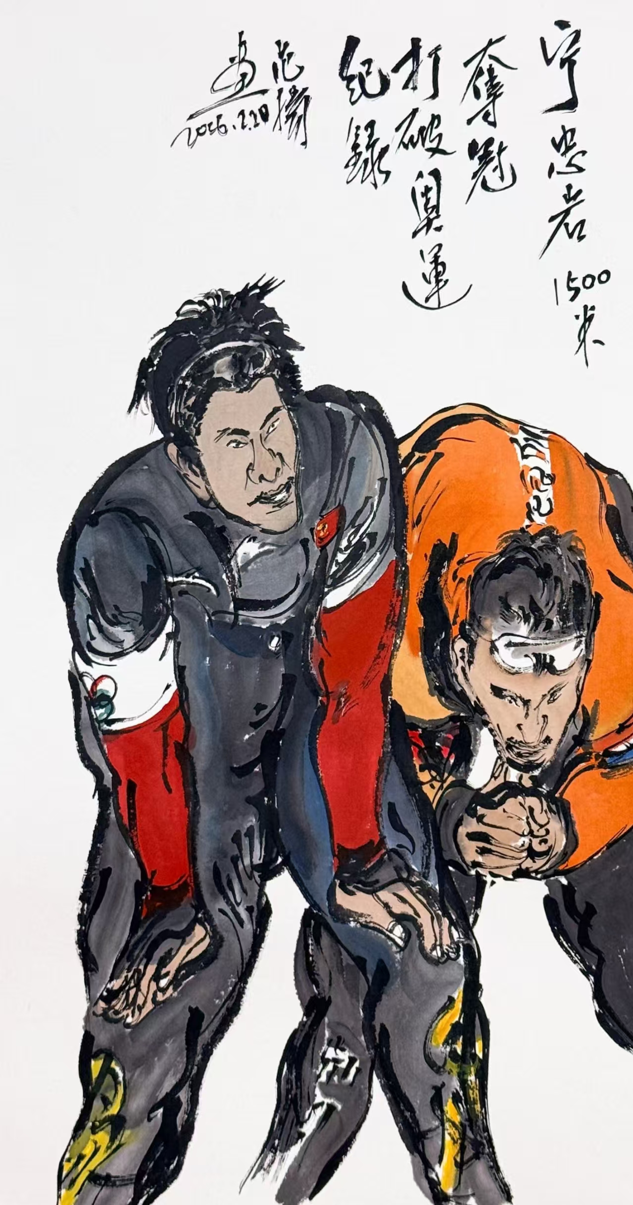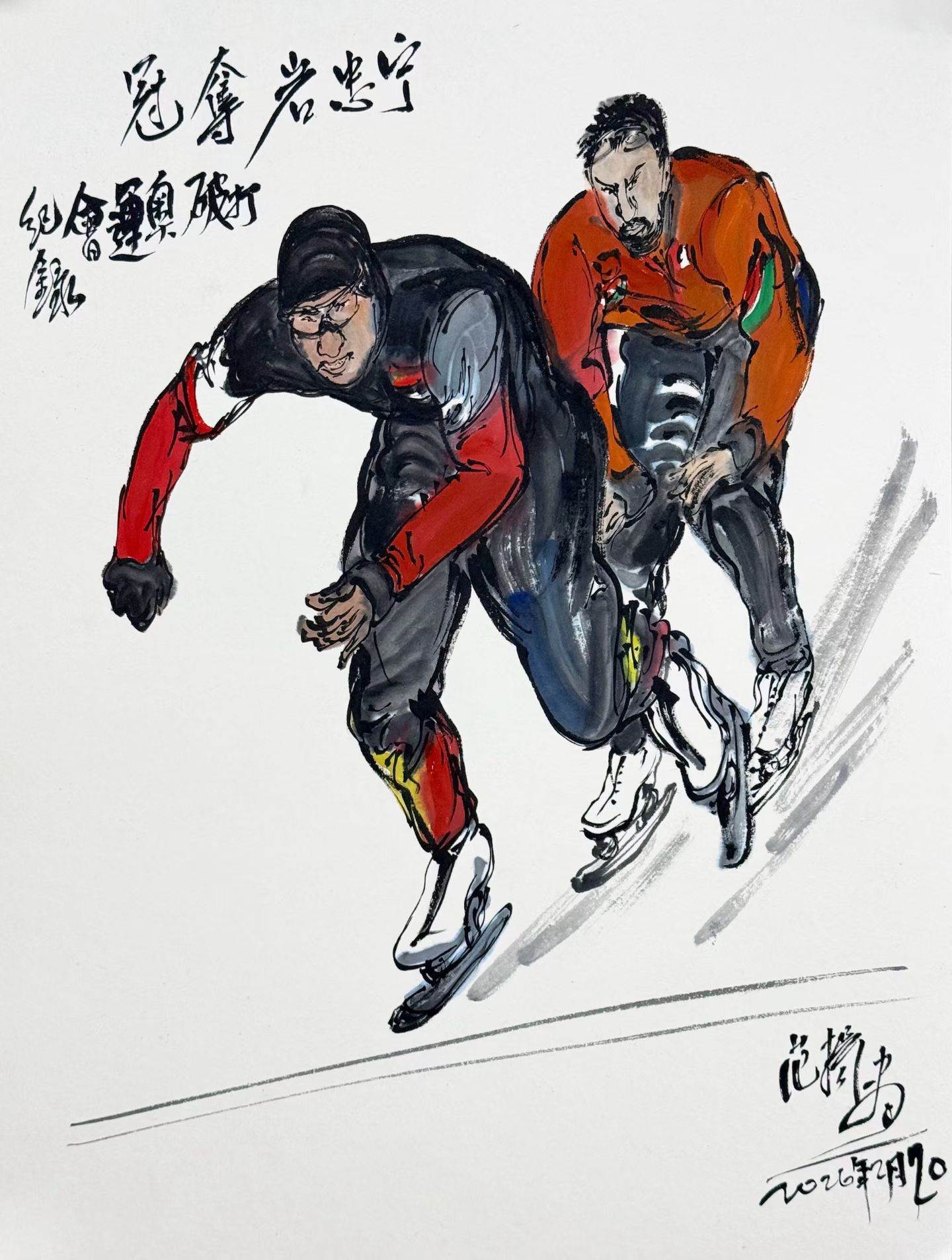 着名字画家范扬先生闻风而动,立行将央视直播画面的精彩短暂写于笔端。宁忠岩冲刺一瞬、喜极而泣等期间被艺术而逼真地逐个呈现。